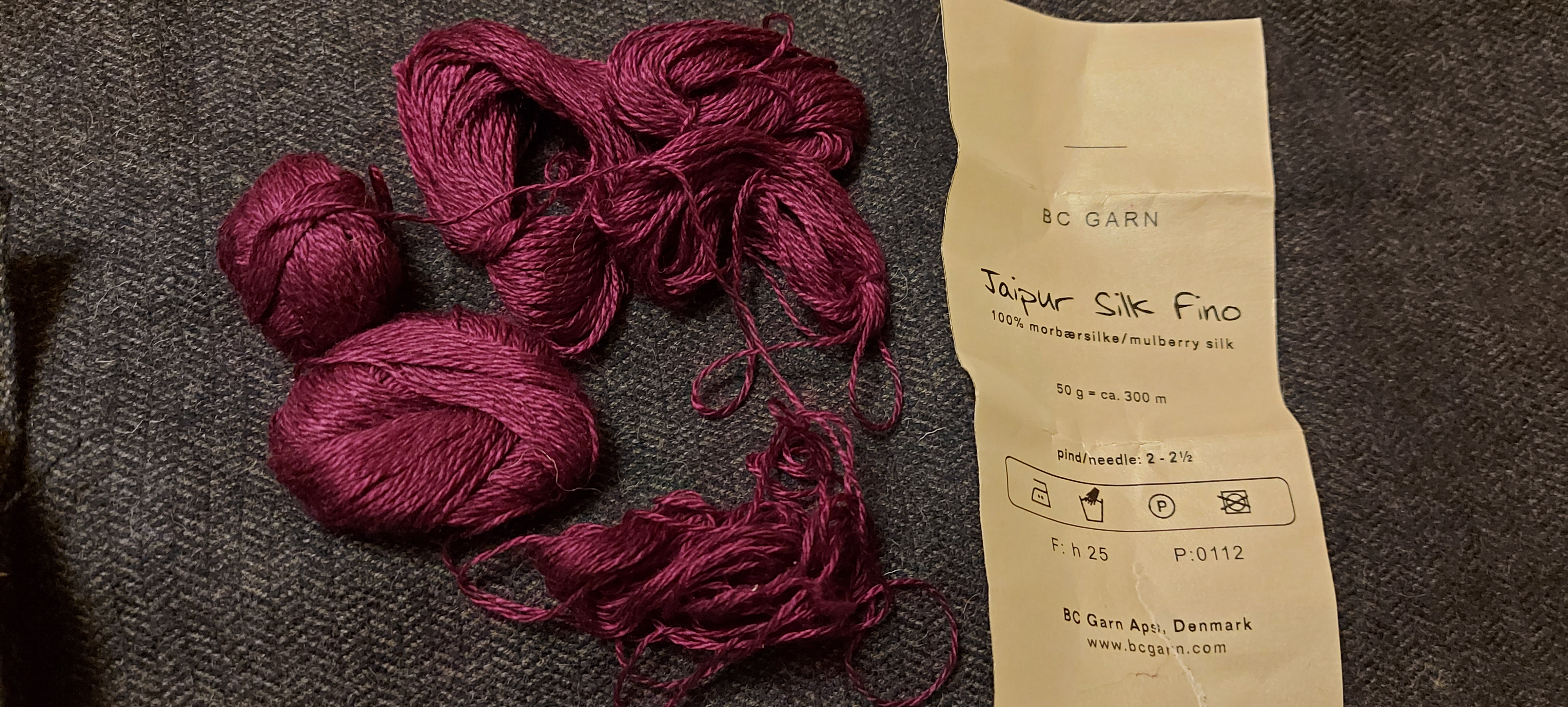 The 100% morbärsilke left over yarn from when Arianna Weidseckerin in Aarnimetsä wove the Silk and copper trim for Keldor.