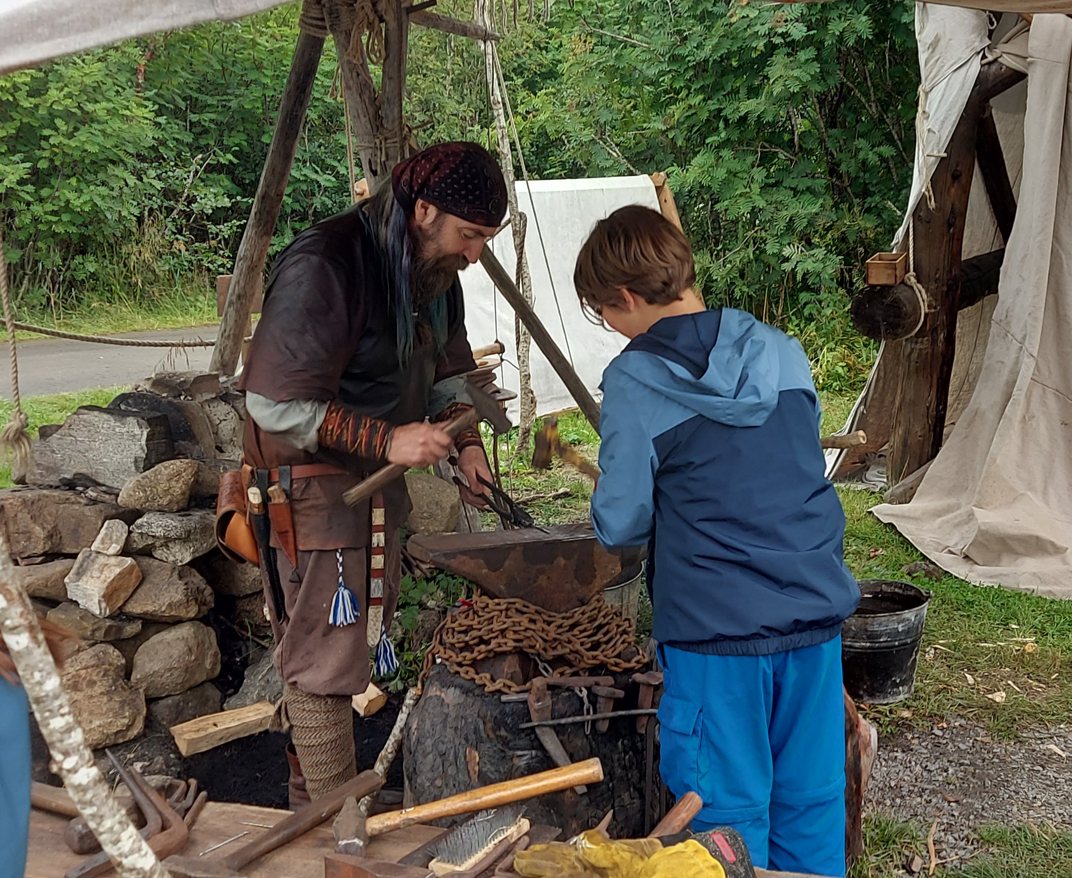 Today Keldor ran the Children’s forge activity at the Viking Festival at Lofotr. He helped them make tiny swords out of nails.