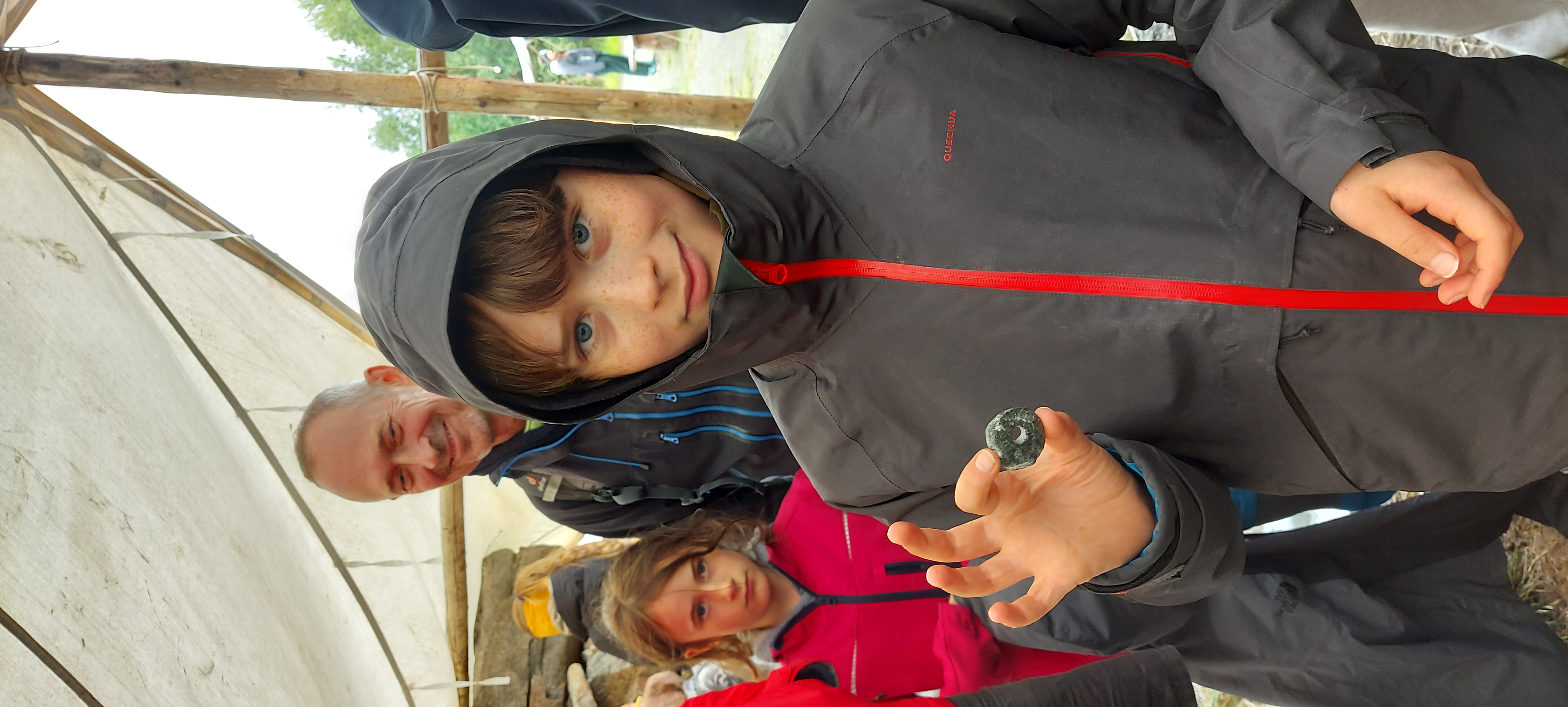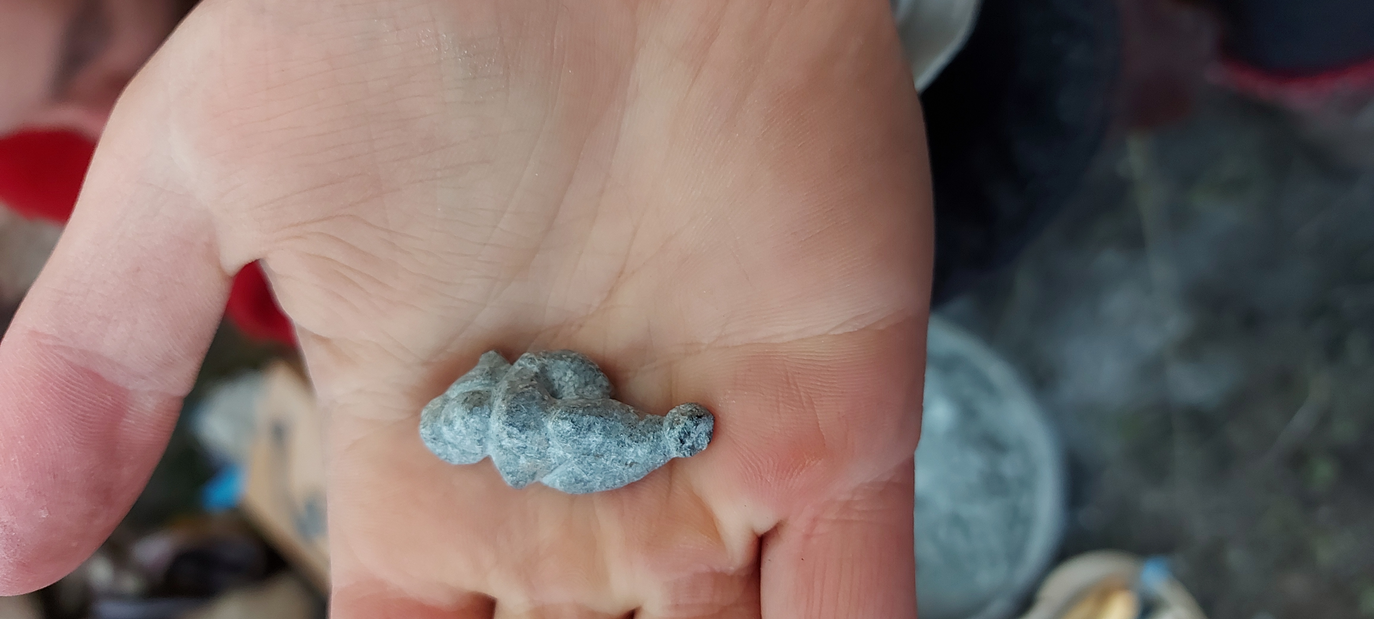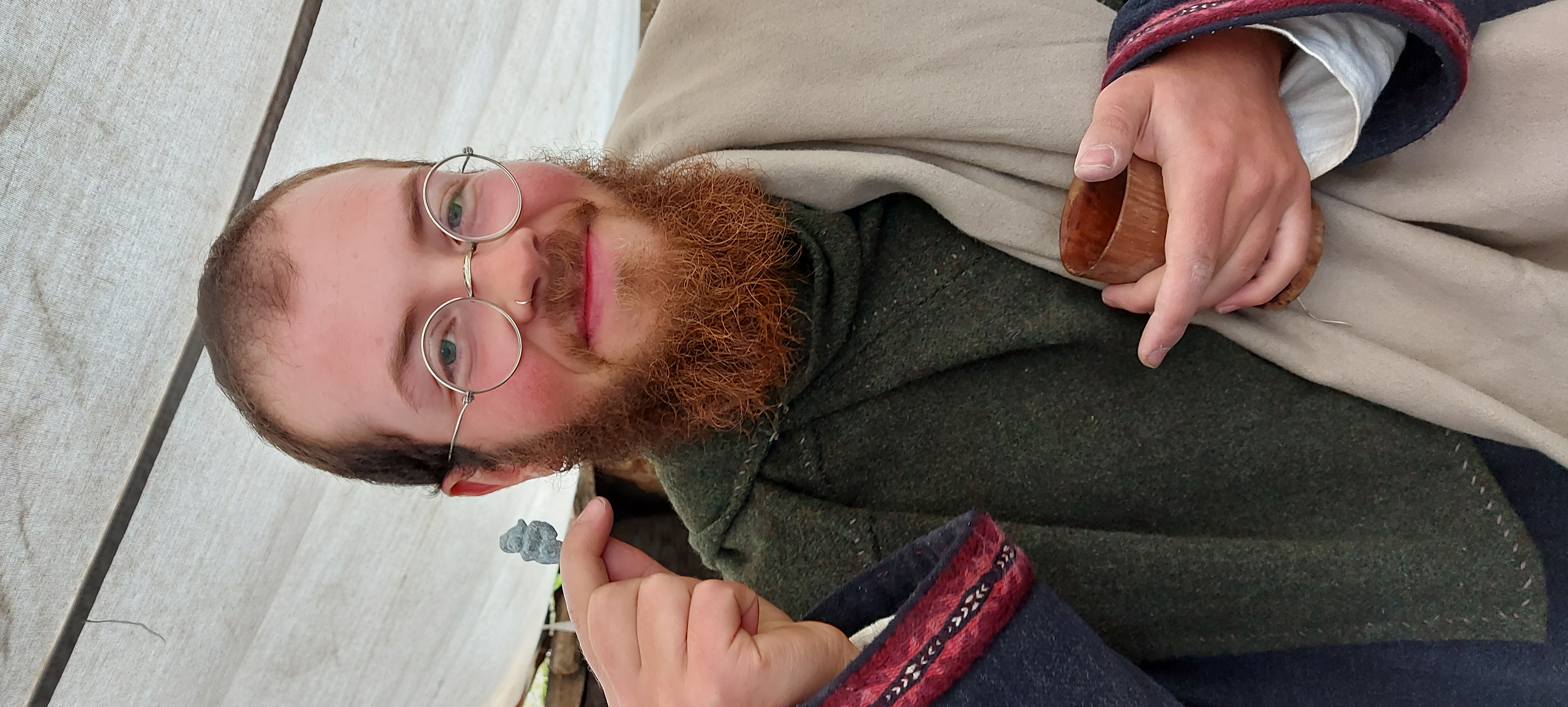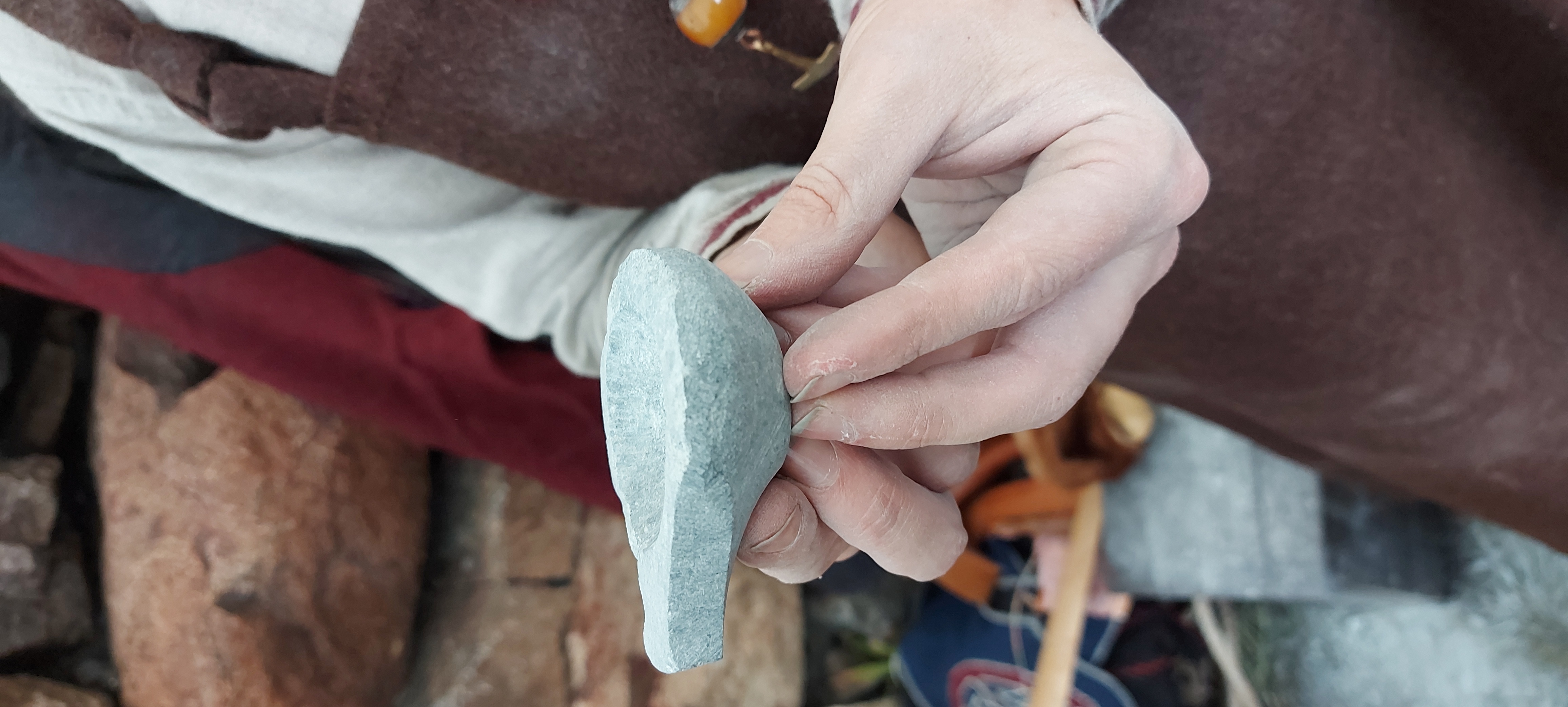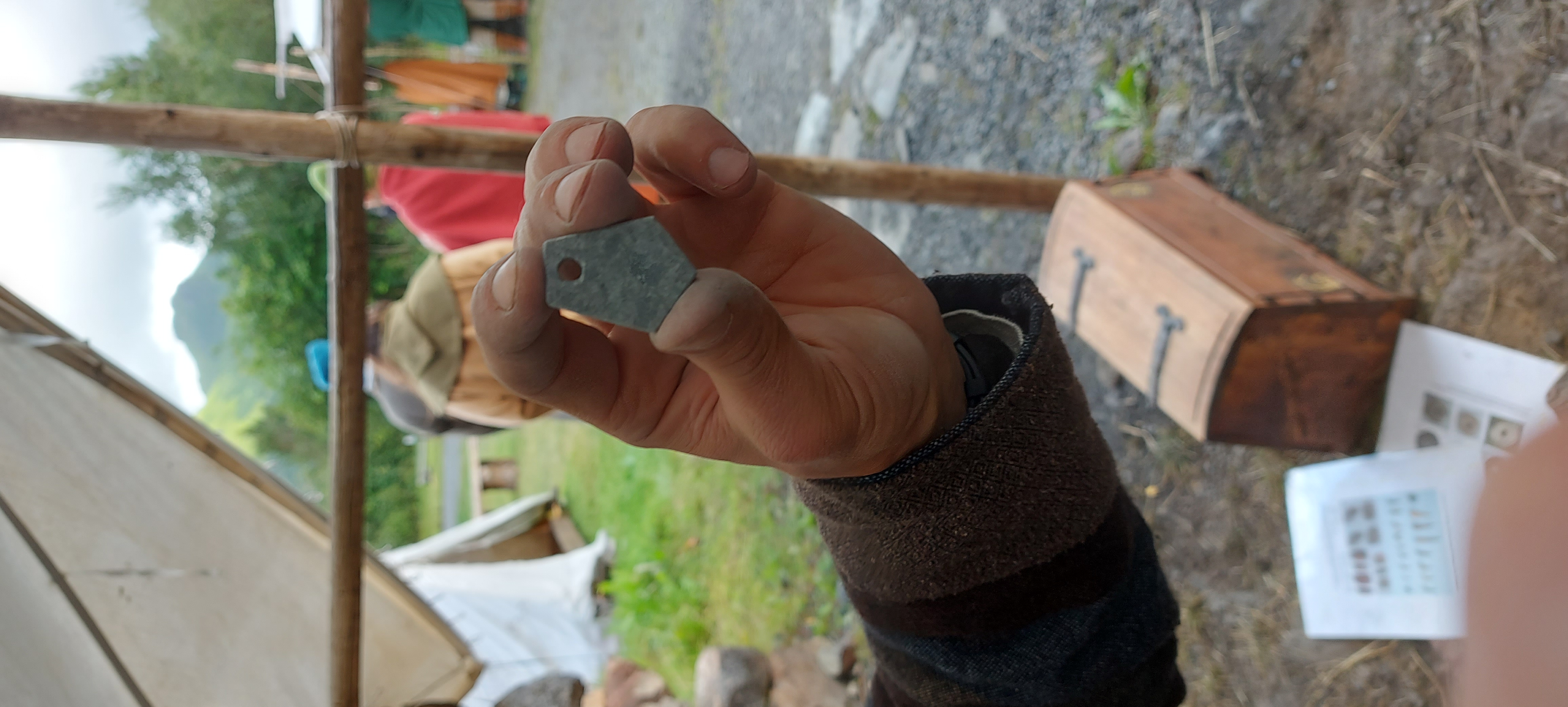 I took photos of most (but absoutly not everyone) of the people and their finished projects, and just counted. 21 people! Most of whom did small things like spindle whorls or necklaces, but there were a couple of oil lamps. Eight of these were festival participants in Viking clothing, six were children in modern cloths, and seven were adults in modern clothes. At least one more adult finished a piece,showed it to me and left before I thiught about asking if I could take photos, and I am pretty certain a handful of other children participated without showing me a finished product.