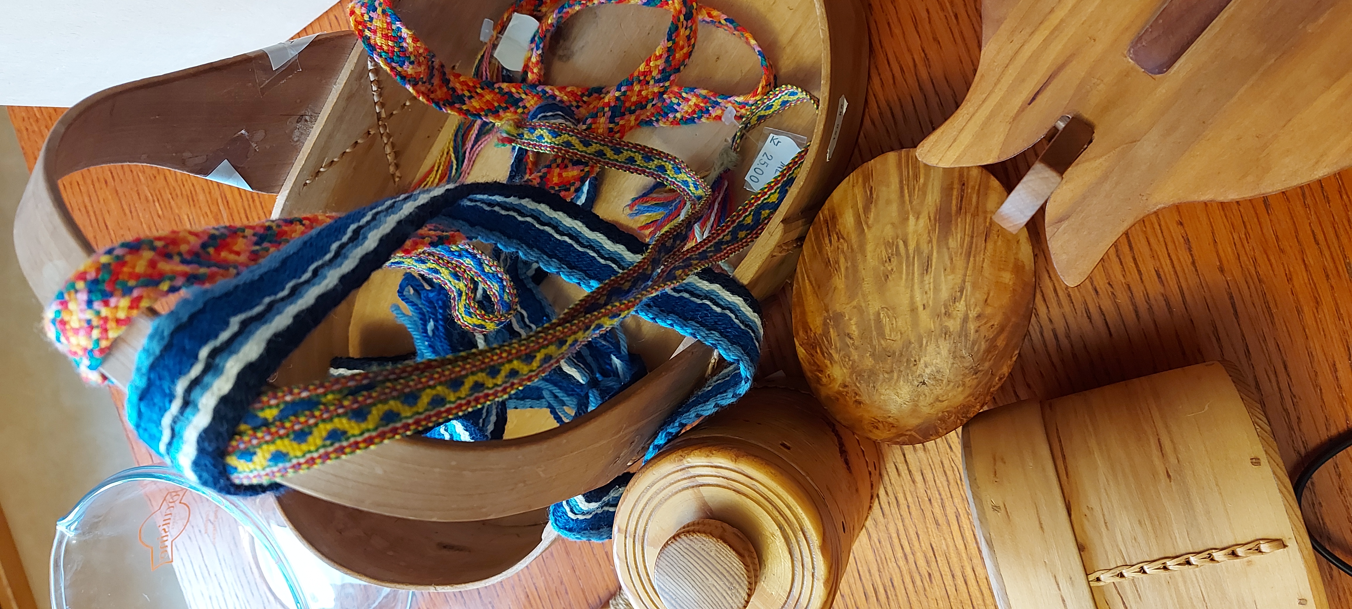 While waiting he came home and picked up the old freezer we are getting rid of, now that we have the better one from his dad. Since he wasn’t working, I failed on my attempt to work on the bus, and we hung out chatting till my bus got to Ånäset, where I hopped off and met him, and we went to the Stenfors Antique and second hand store, where we bought lots of things. Hand woven bands, bentwood boxes, wooden bucket style lunchbox with lid, a medieval style saw, a felt sun hat, a mad scientist lightbulb lamp, some Asterix comic books, a bunny, and a large wooden box suitable for carrying large scrolls.
