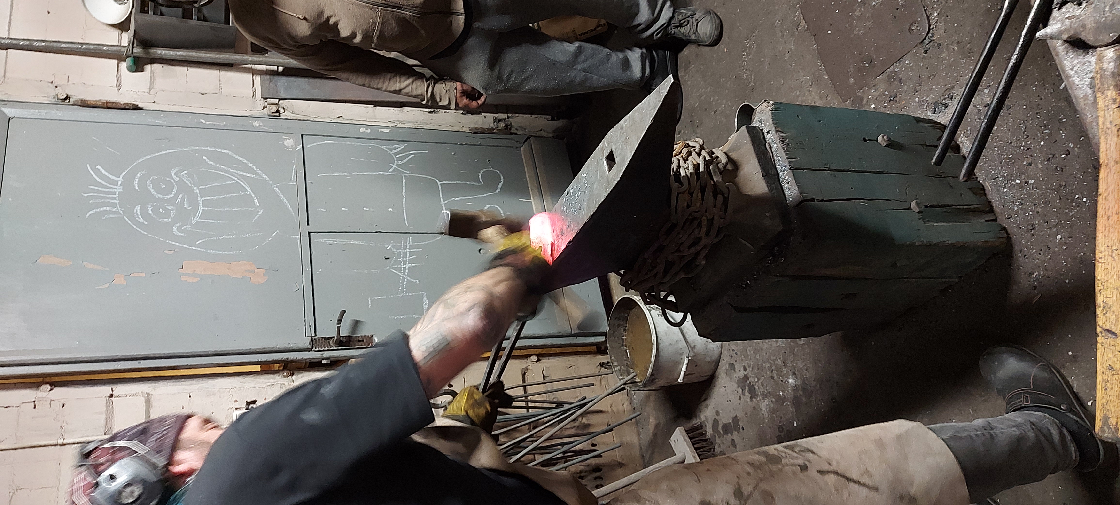 Smithy day at Grundet with Keldor, Joni, and Oscar. They transformed some of Joni’s bloom to metal bars, I started working on the Skellefteåyxa soapstone mould.