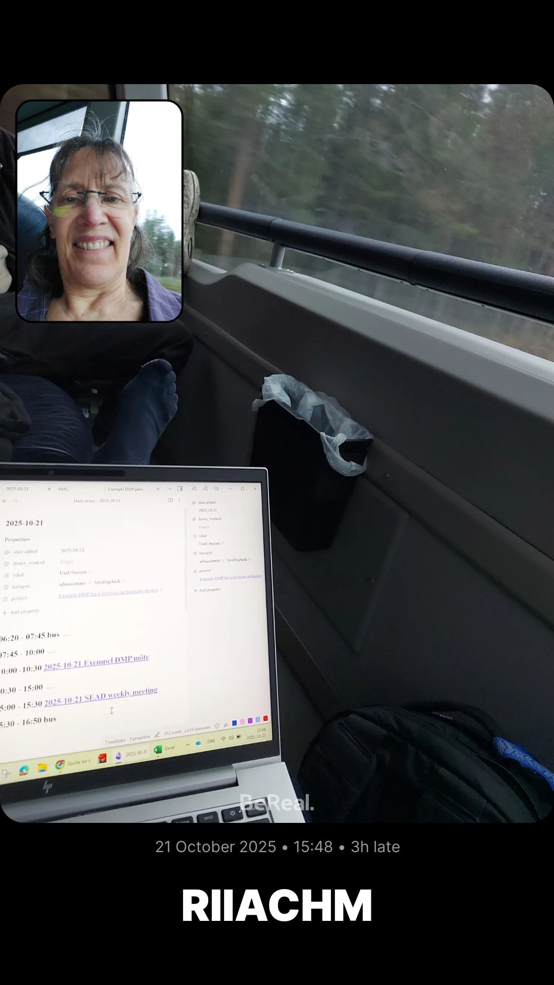 Pressed the stop button, called Keldor, who had just driven past where I was. Grabbed everything, got off the bus, he turned around, came and picked me up.