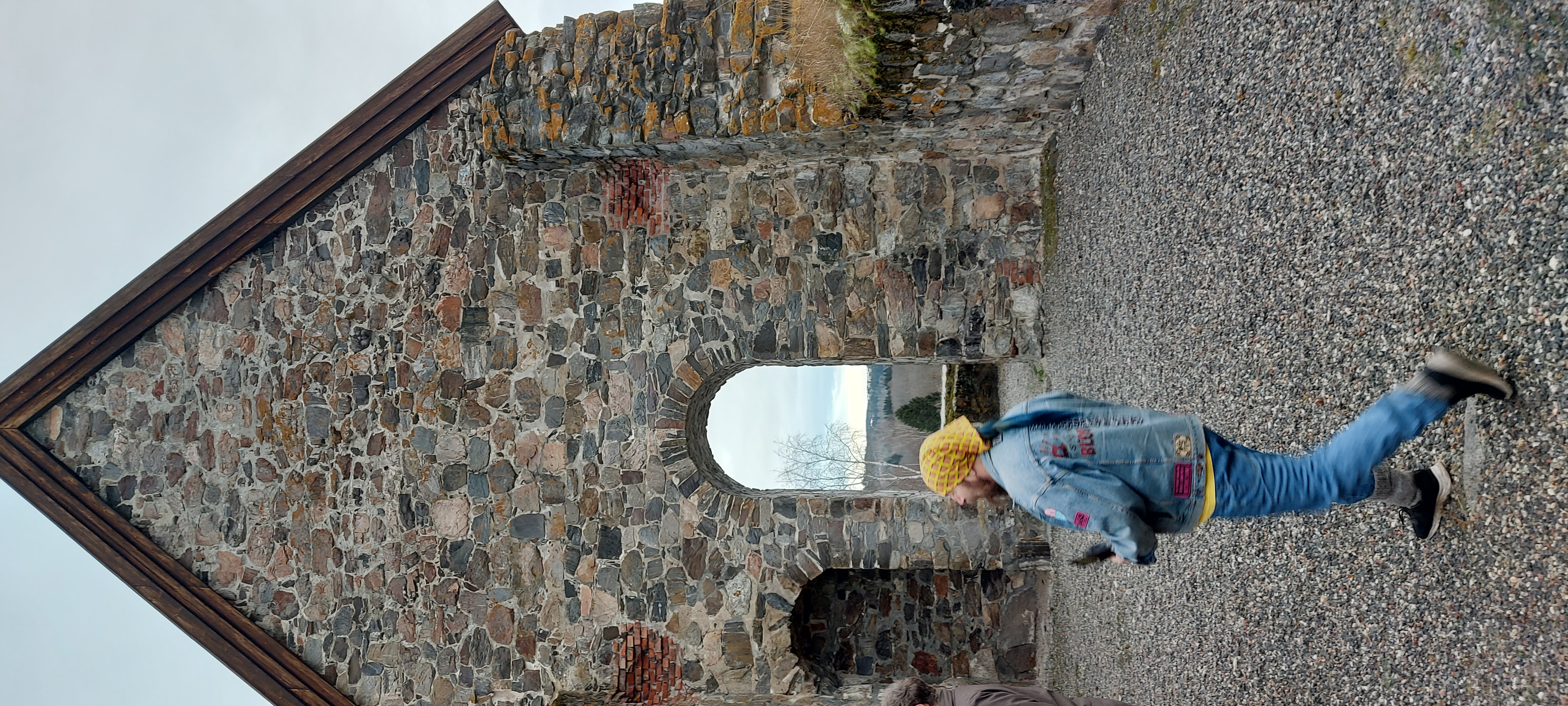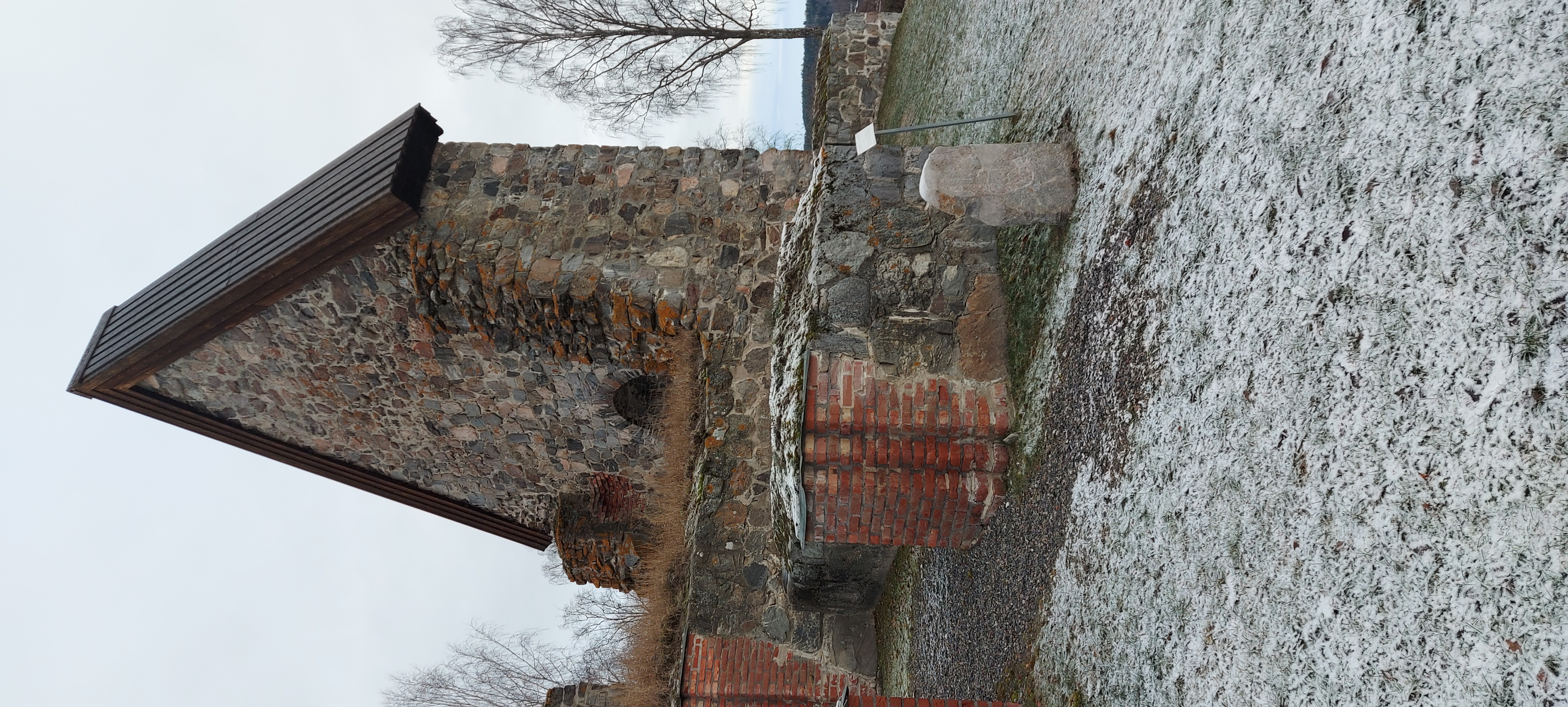 Then up, breakfast and chat with people, pack and load the car, help clean and pack the site a little, then start home, stopping first at a local runestone, with bonus 12th Century church ruins. Selångerstenen, M10, L1935:4629, Selånger 86:2, then at a second had store, where Keldor bought colapsable pennant pole, and a smithy tong, and Keldor and Þórólfr both bought wooden scroll cases.