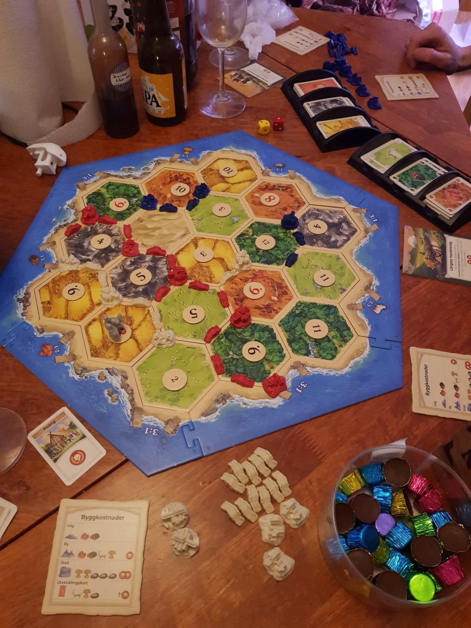 Then we played Catan. I have had a small trvel version since I lived in Australia, but Keldor decided that he wants a full sized set, as then it will be possible to add expansion sets.