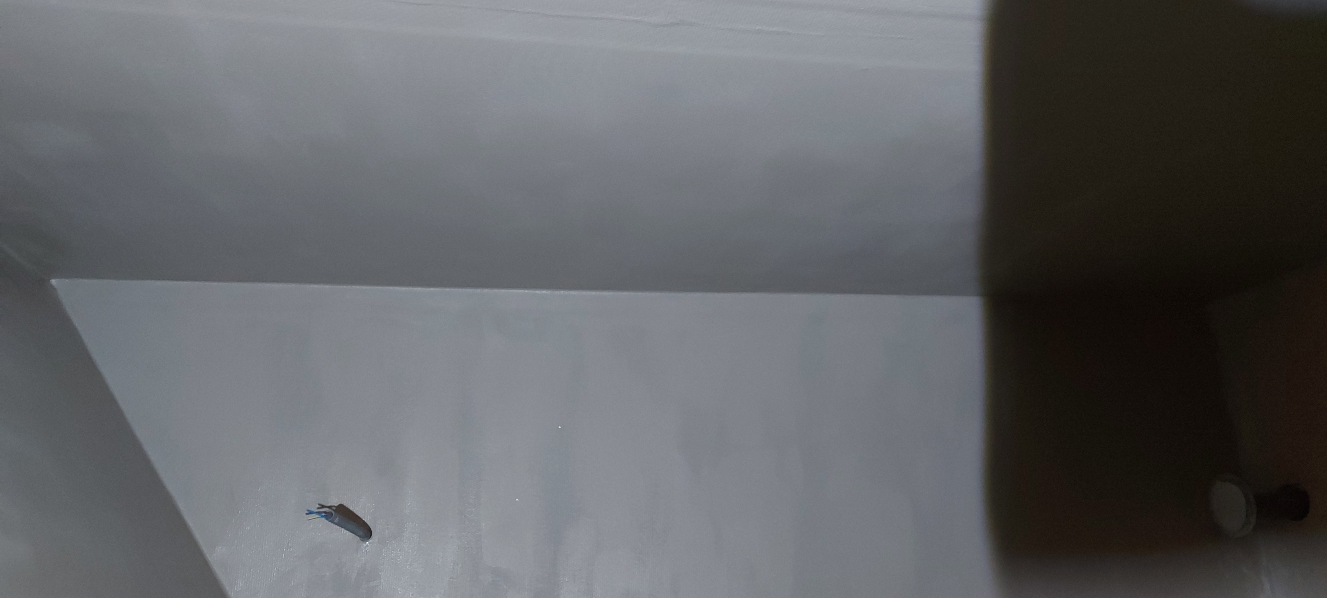 After work I painted the first coat of paint in the loo in progress, using up most of the grayish beige wet room paint we used in the downstairs bathroom.