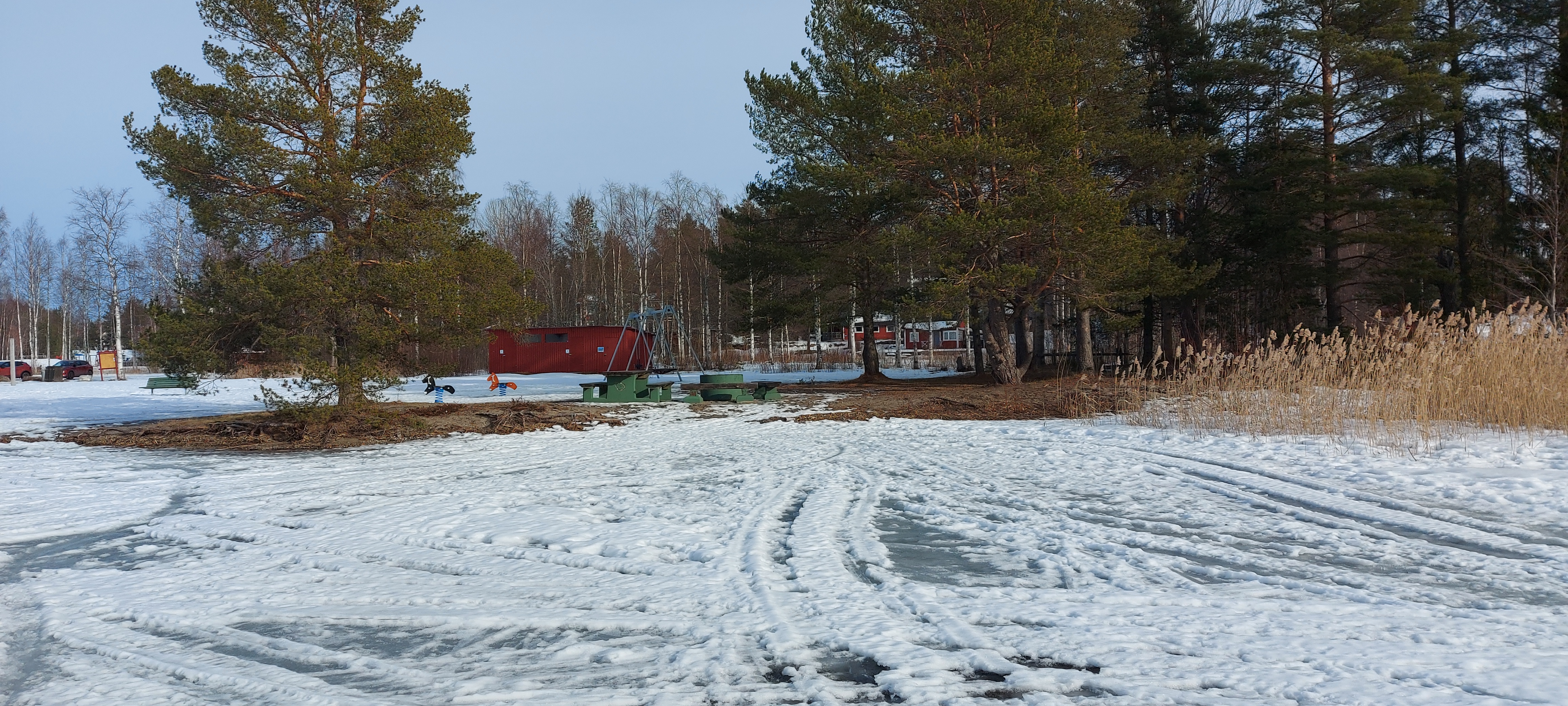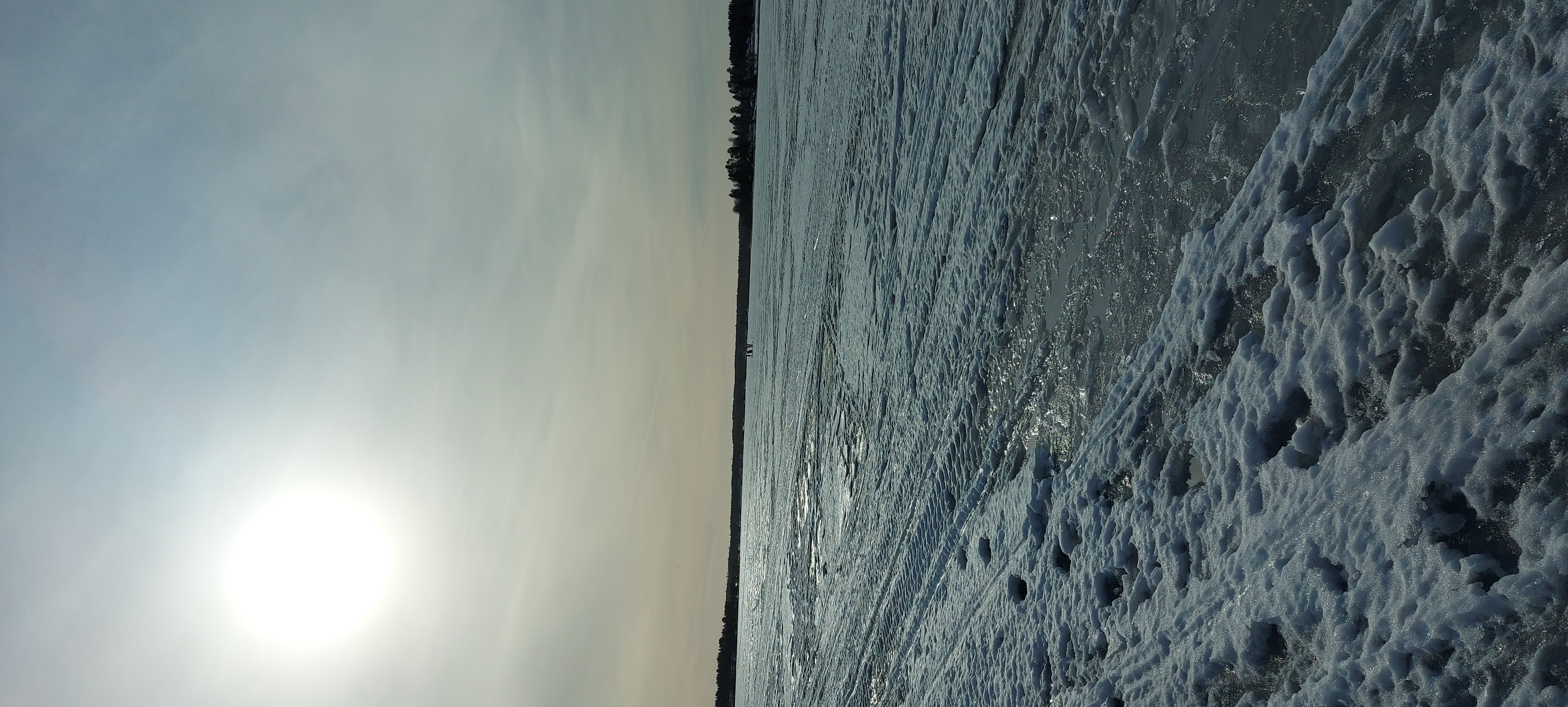 While the ice was nice and thick (if rather covered in places with water due to the above-freezing temperatures), the shoreline really underscores just how little snow we had this winter, as it is already gone in many places on the shore: