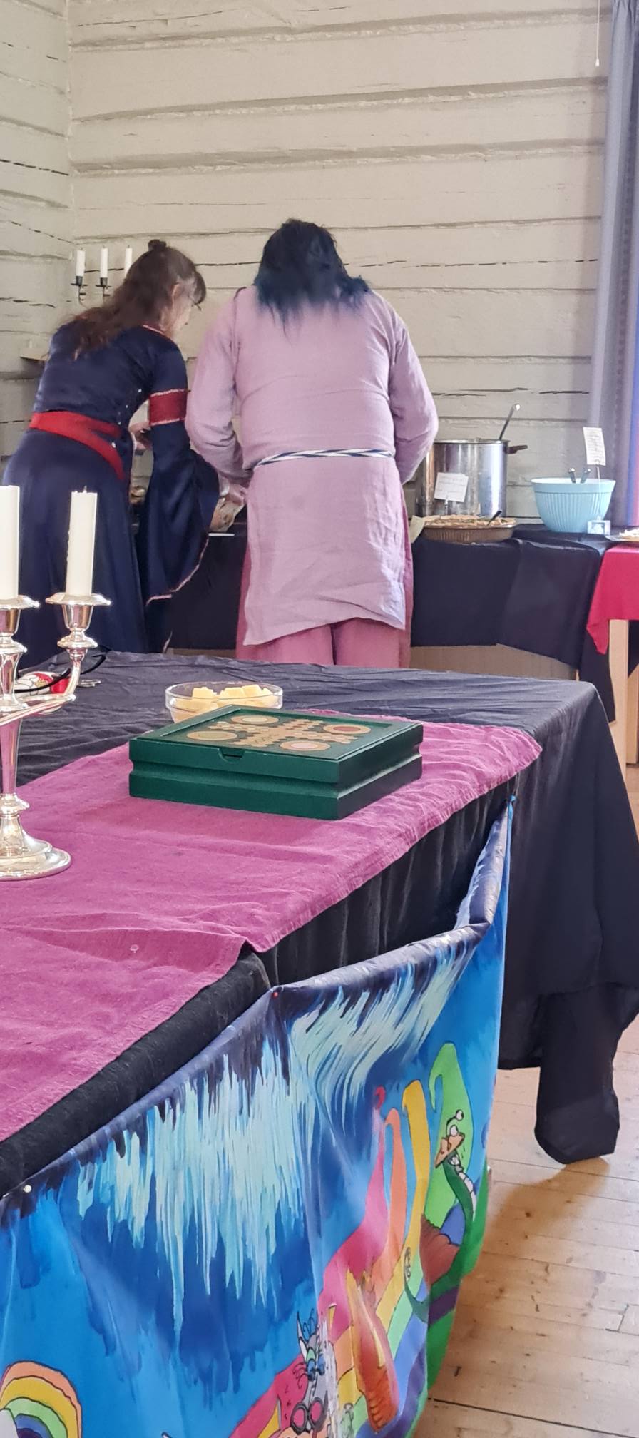 This year we didn’t bother finding a latter to get the Norrskensbard banner high enough to cover the entire modern art on the wall. I think if we use this site again next time, we should: