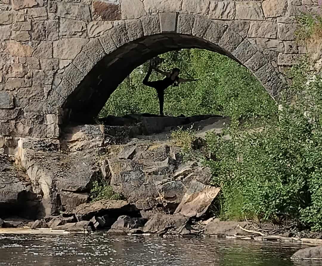 My hips were aching after yesterday’s drive, so I set my yoga app to the Pilates setting, boosting glute strength, and did my workout on some sheeepskins under the bridge, in the shade, with a beautiful breeze flowing past. 100% recommended. Would do again.