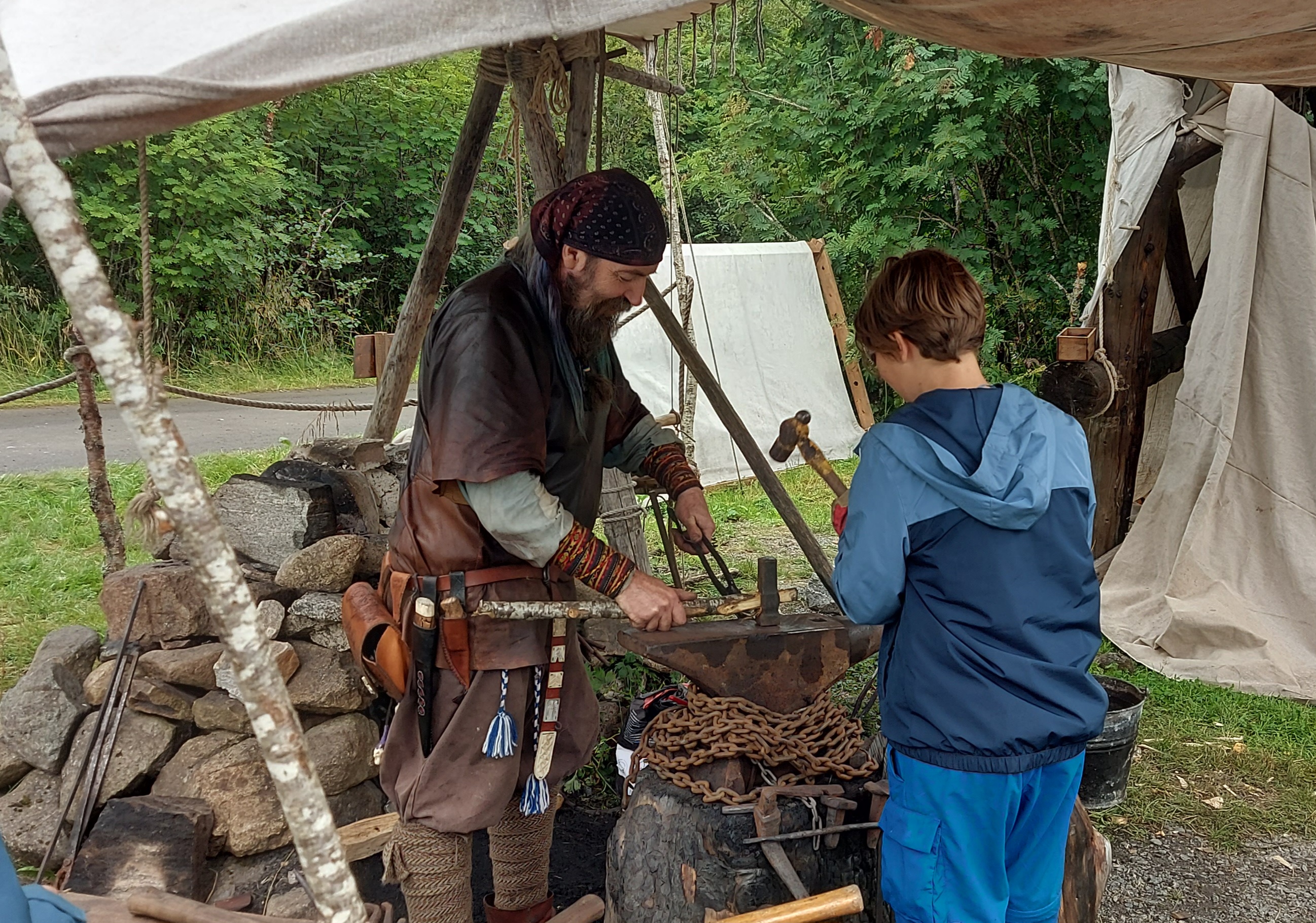 Today Keldor ran the Children’s forge activity at the Viking Festival at Lofotr. He helped them make tiny swords out of nails.