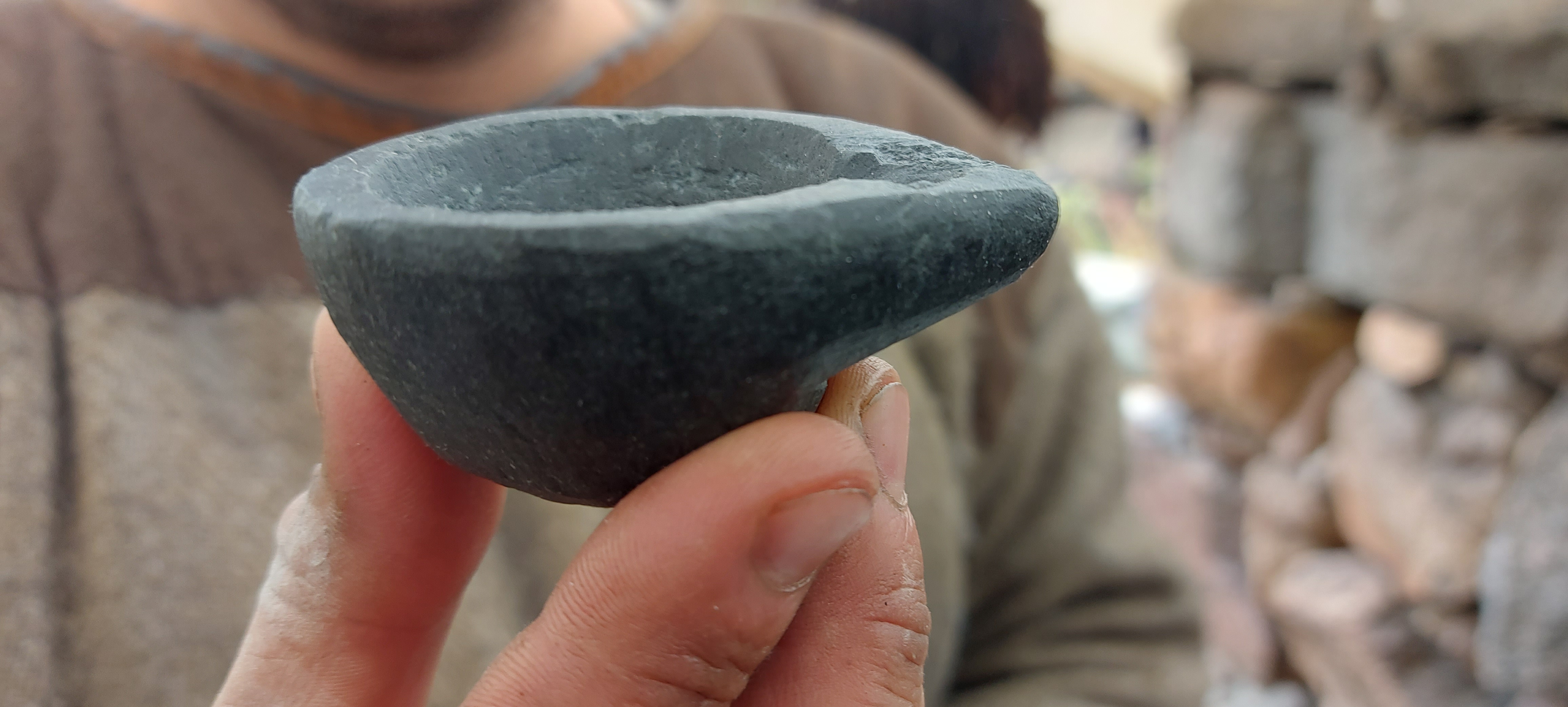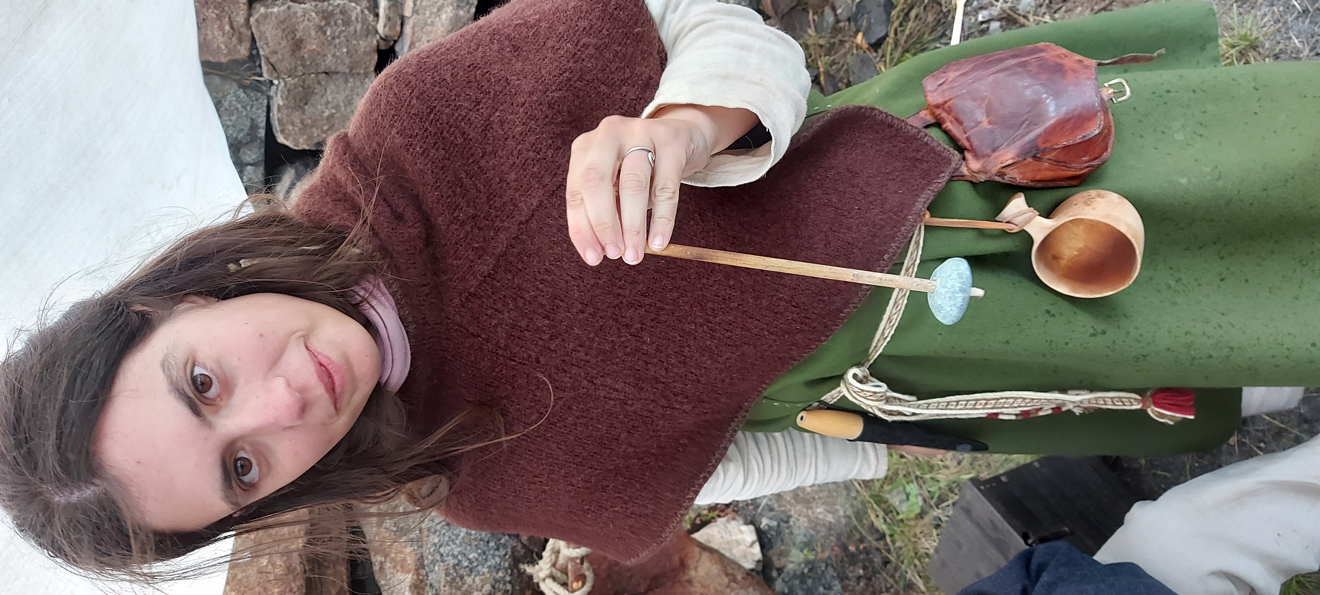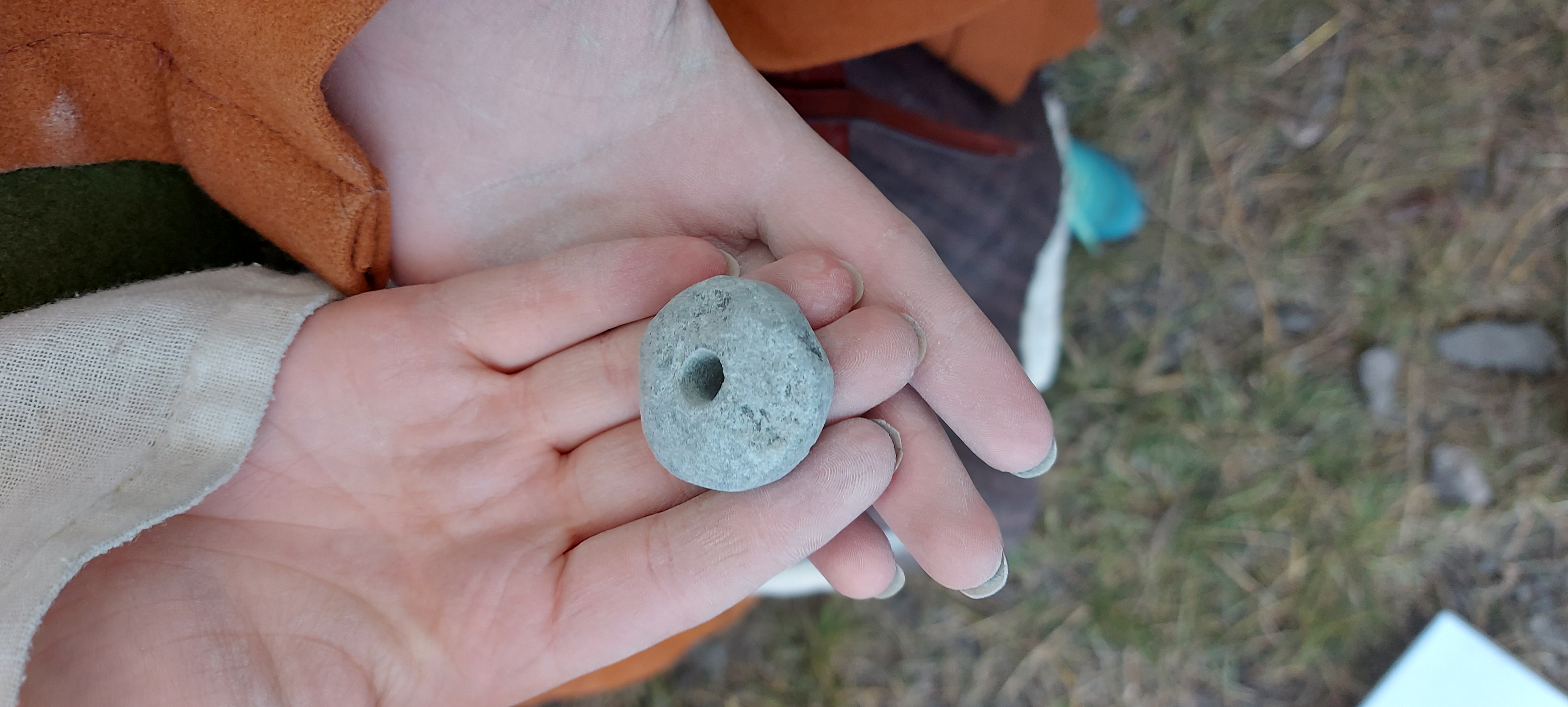 I took photos of most (but absoutly not everyone) of the people and their finished projects, and just counted. 21 people! Most of whom did small things like spindle whorls or necklaces, but there were a couple of oil lamps. Eight of these were festival participants in Viking clothing, six were children in modern cloths, and seven were adults in modern clothes. At least one more adult finished a piece,showed it to me and left before I thiught about asking if I could take photos, and I am pretty certain a handful of other children participated without showing me a finished product.