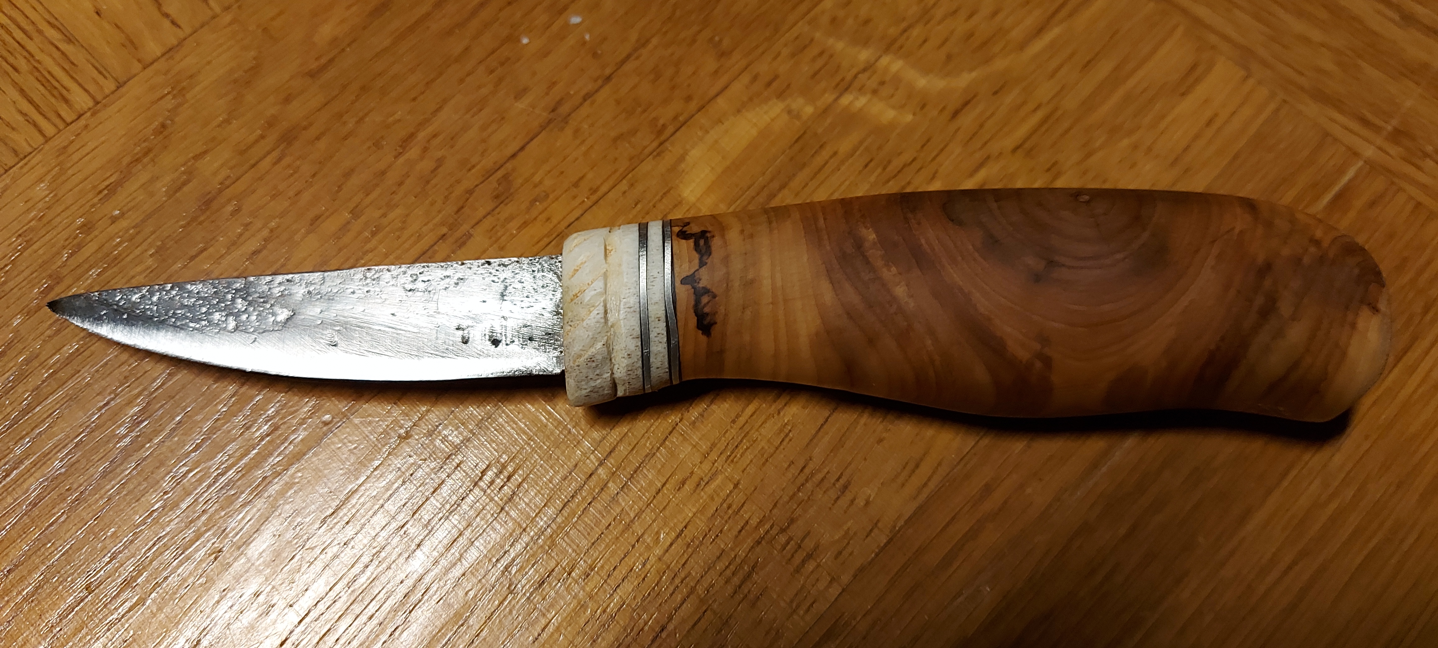 Stayed home because the car’s engine repair warning light came on ladt night on the way home from Grundet, so we zoomed into Reengardas Hantverksträff. Made some more progress on my skellefteyxan mould, Keldor made a new knife handel