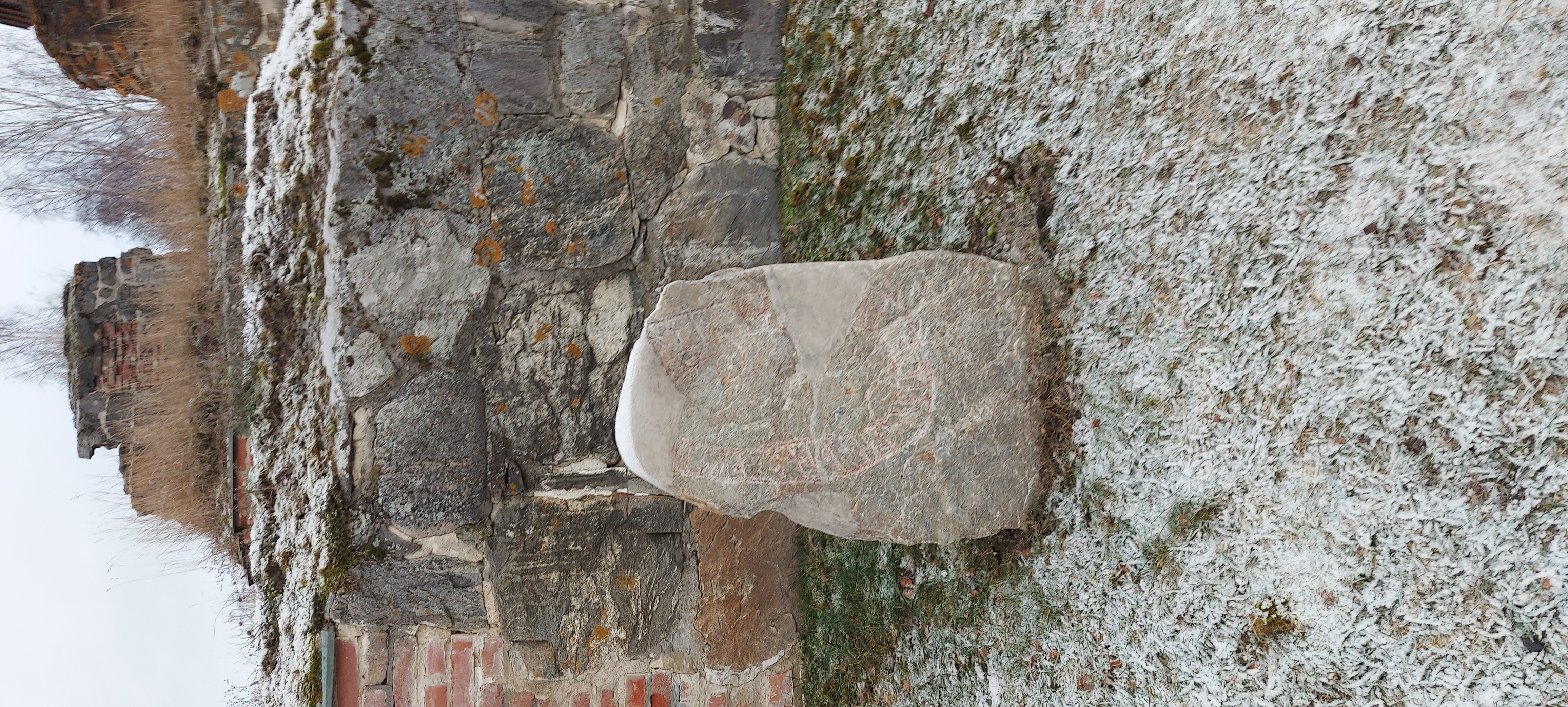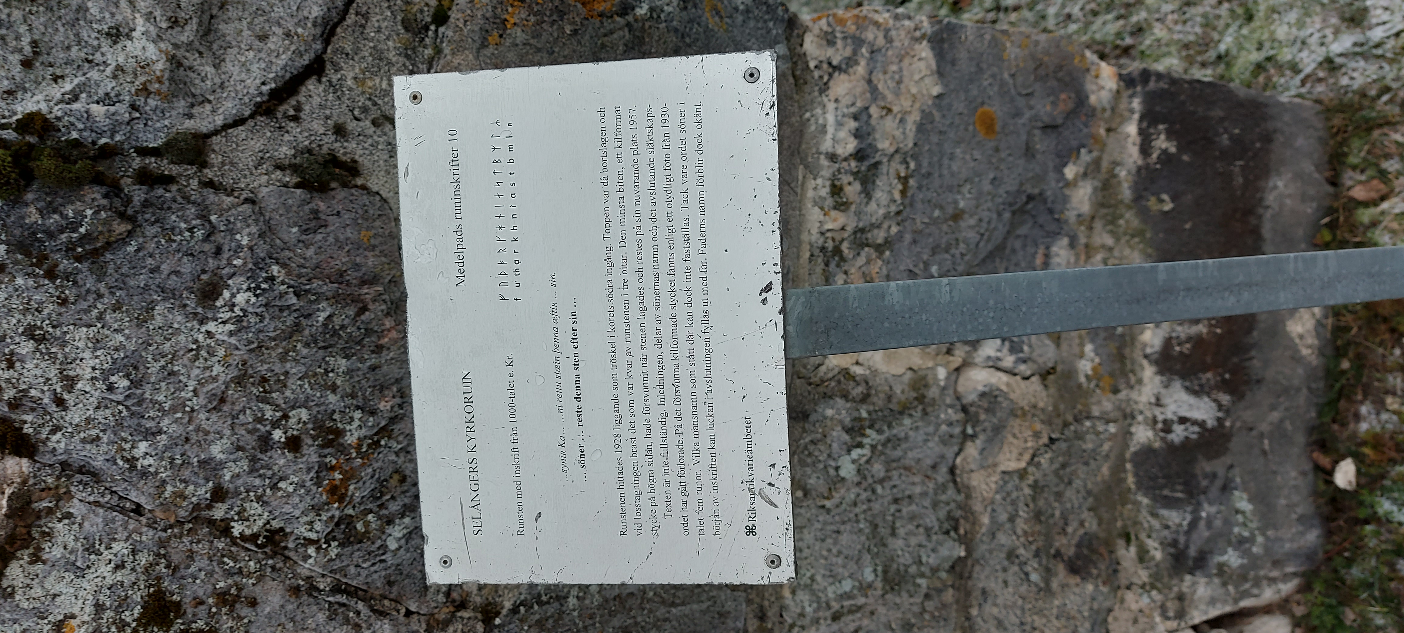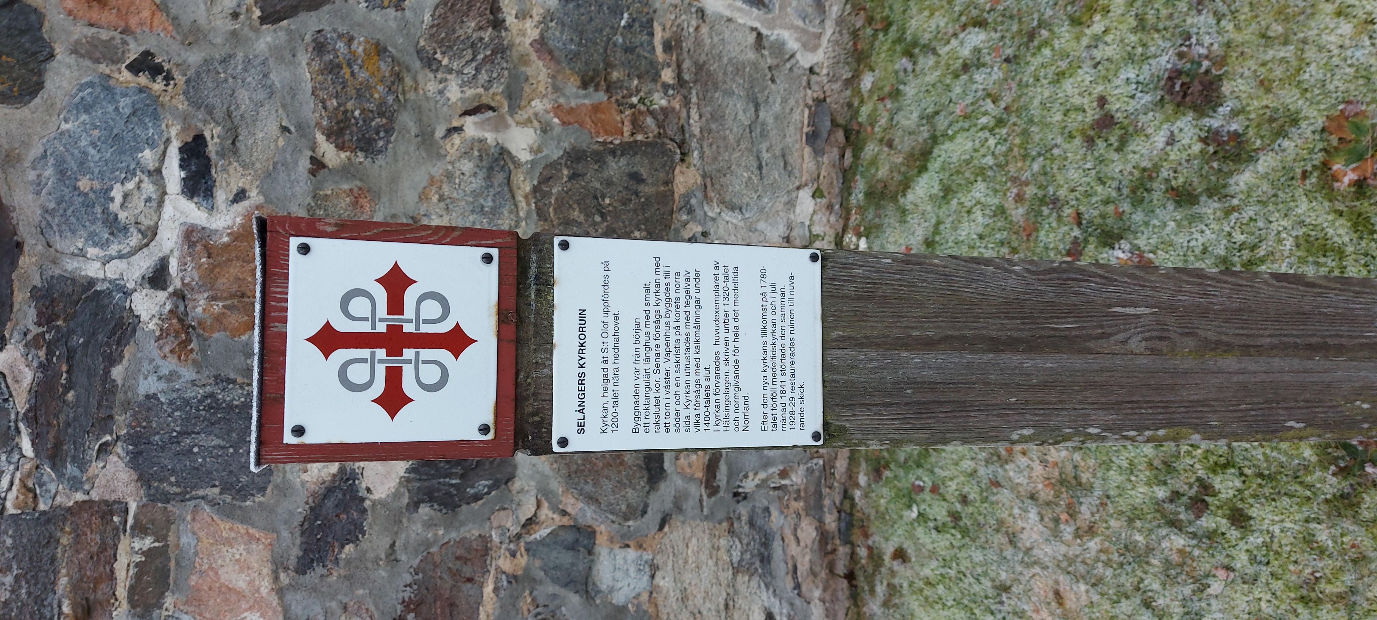 Then up, breakfast and chat with people, pack and load the car, help clean and pack the site a little, then start home, stopping first at a local runestone, with bonus 12th Century church ruins. Selångerstenen, M10, L1935:4629, Selånger 86:2, then at a second had store, where Keldor bought colapsable pennant pole, and a smithy tong, and Keldor and Þórólfr both bought wooden scroll cases.