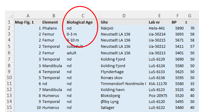 gives the (likely?) age of the individual whose bone was analysed in terms of:
