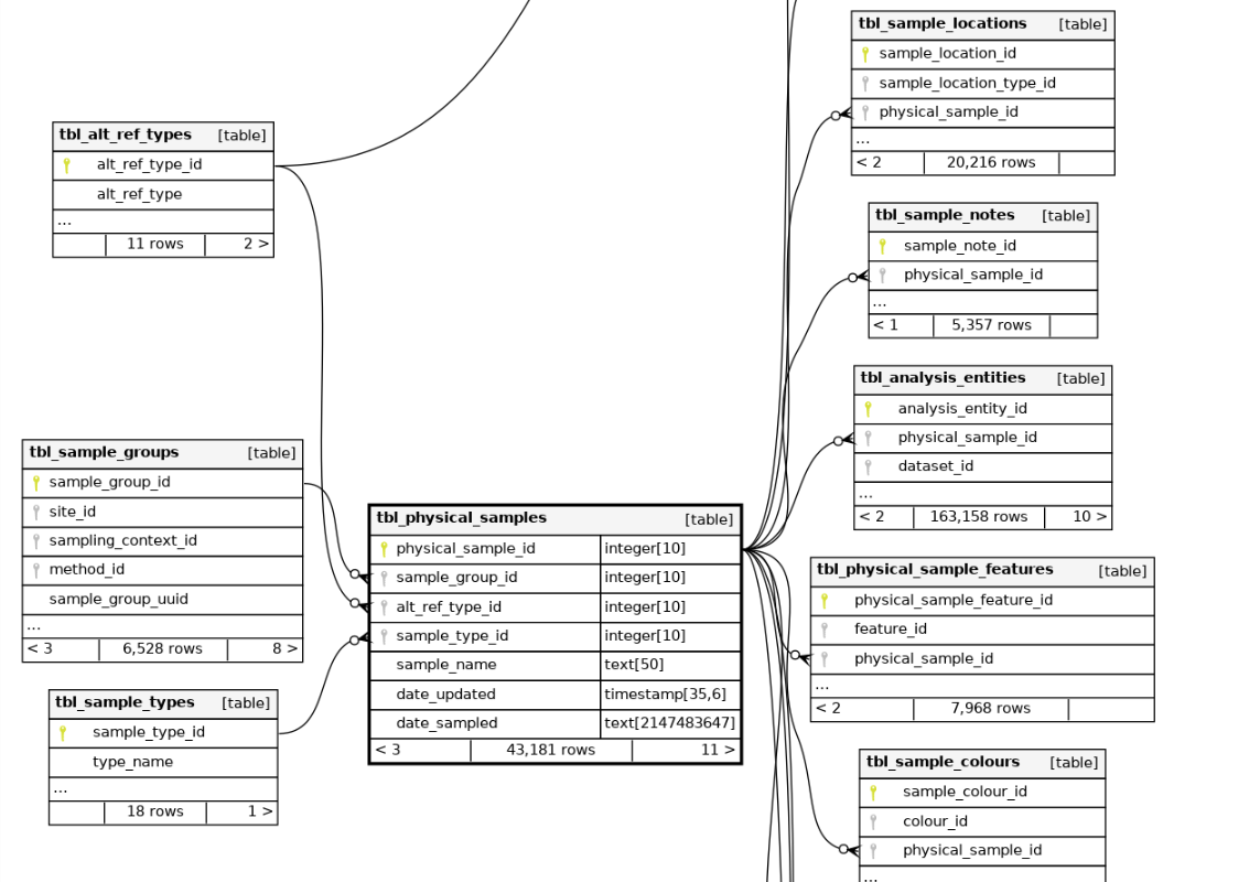 needs connection to Entity sample_groups needs connections to Entity analysis_entities needs connections to Entity physical_sample_features