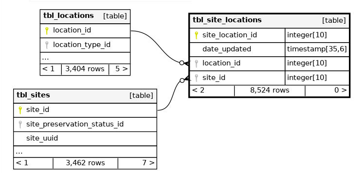 - Uppdragsnummer = tbl_site_properties (where tbl_property_type = RAÄ nummer)
