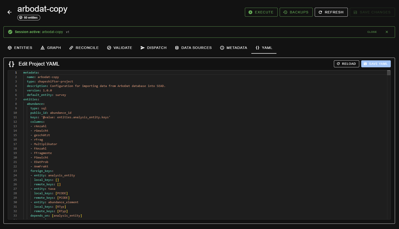 This window provides a summary of all of the project information, in YAML format. Edits made here will be reflected in the other dialogue boxes.